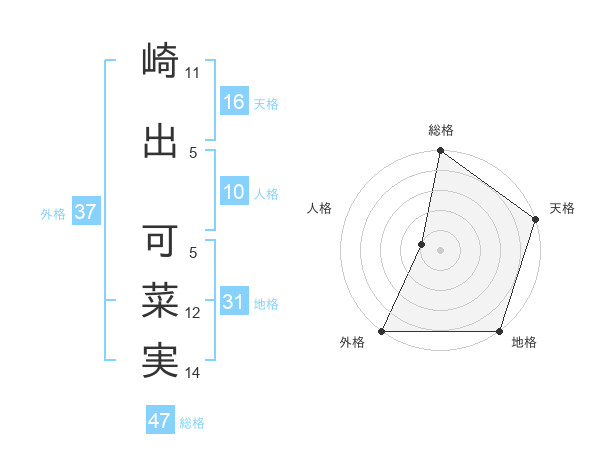 崎出 可菜実さんを姓名の画数から五運を鑑定