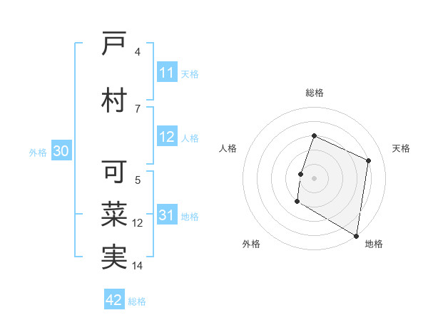 戸村 可菜実さんの地格は31画の5点!