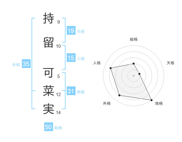 持留 可菜実さんの総格は50画の2点!