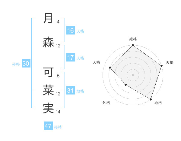 月森 可菜実さんを姓名の画数から五運を鑑定