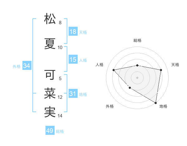 松夏 可菜実さんを姓名の画数から五運を鑑定