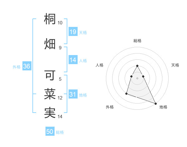 桐畑 可菜実さんの総格は50画の2点!