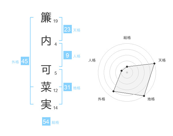 簾内 可菜実さんの天格は23画の5点!