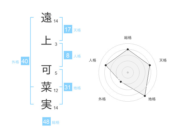 遠上 可菜実さんの地格は31画の5点!