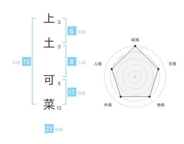 上土 可菜さんの外格は15画の4点!