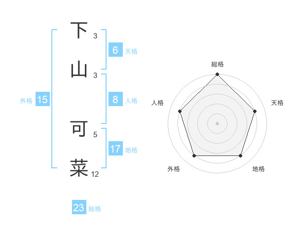 下山 可菜さんの総格は23画の5点!