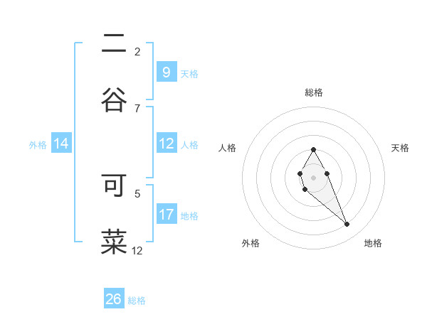 二谷 可菜さんの総格は26画の2点!