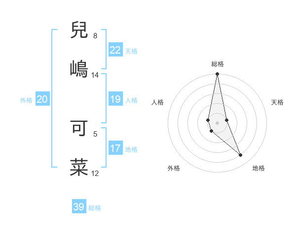 兒嶋 可菜さんの総格は39画の5点!