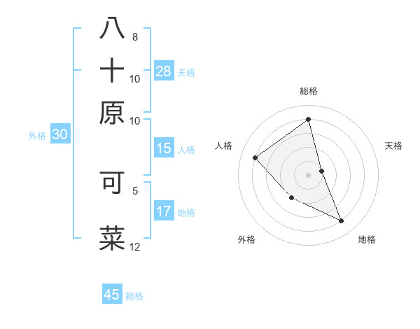 八十原 可菜さんの総格は45画の4点!
