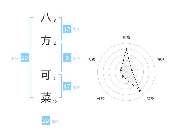 八方 可菜さんの総格は29画の4点!