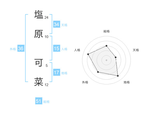 塩原 可菜さんの総格は51画の3点!