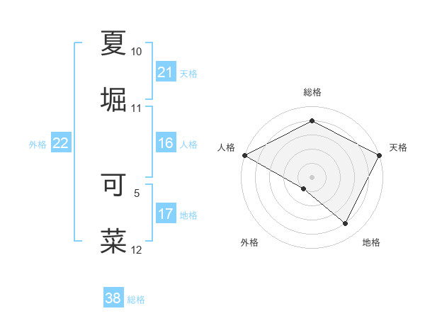 夏堀 可菜さんを姓名の画数から五運を鑑定