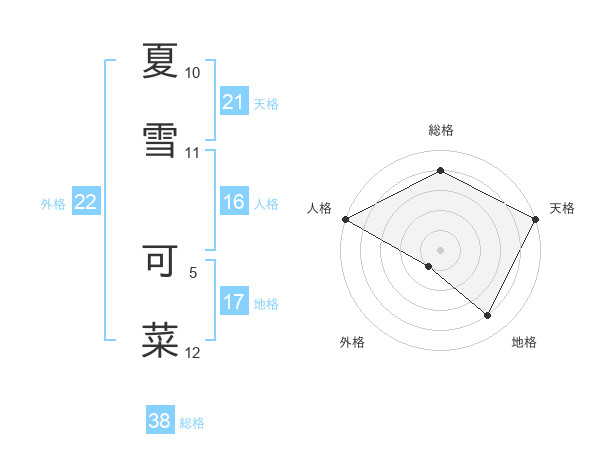 夏雪 可菜さんを姓名の画数から五運を鑑定
