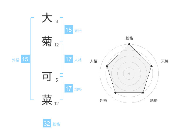 大菊 可菜さんの天格は15画の4点!