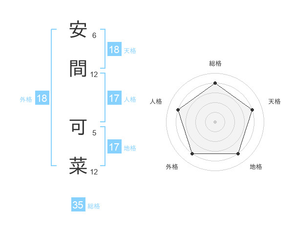 安間 可菜さんの総格は35画の4点!