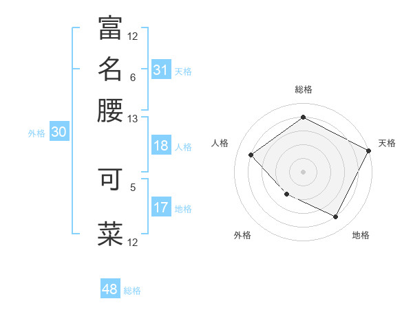 富名腰 可菜さんを姓名の画数から五運を鑑定