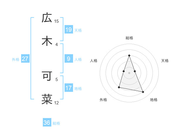 広木 可菜さんの外格は27画の3点!