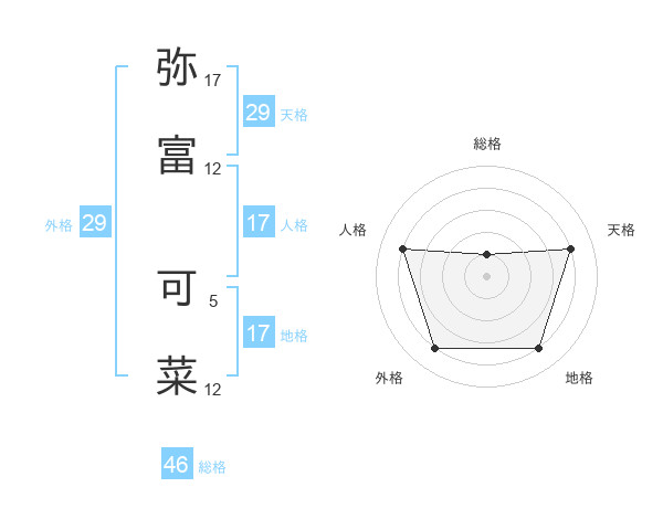 弥富 可菜さんの天格は29画の4点!