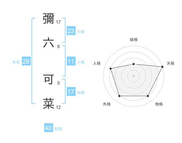 彌六 可菜さんを姓名の画数から五運を鑑定