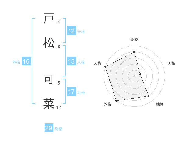 戸松 可菜さんの総格は29画の4点!