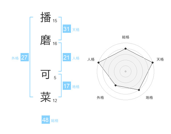 播磨 可菜さんを姓名の画数から五運を鑑定