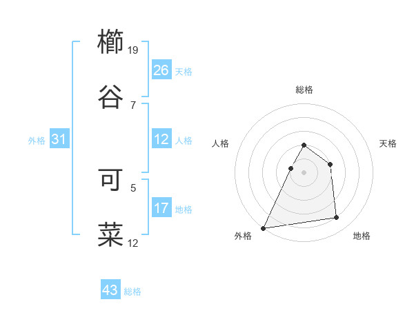 櫛谷 可菜さんの外格は31画の5点!