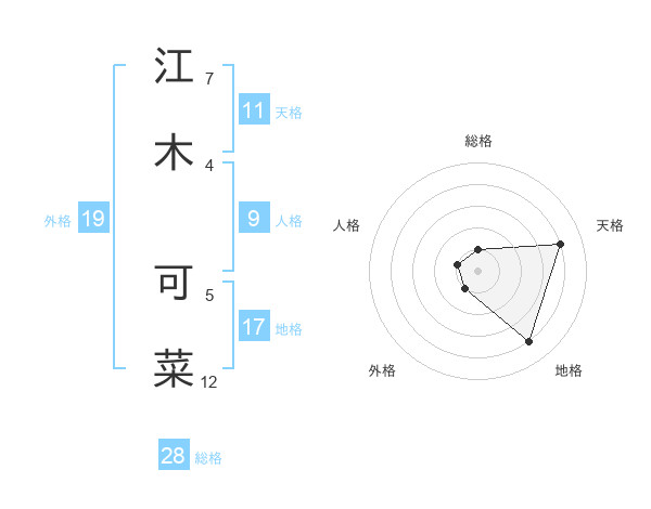 江木 可菜さんの天格は11画の4点!