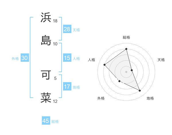 浜島 可菜さんを姓名の画数から五運を鑑定