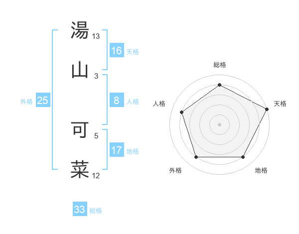 湯山 可菜さんを姓名の画数から五運を鑑定