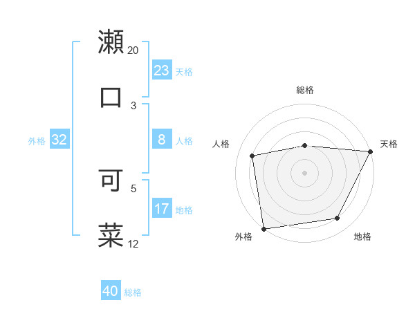 瀬口 可菜さんの天格は23画の5点!