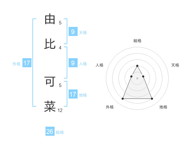由比 可菜さんの外格は17画の4点!