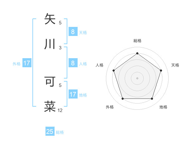 矢川 可菜さんの天格は8画の4点!