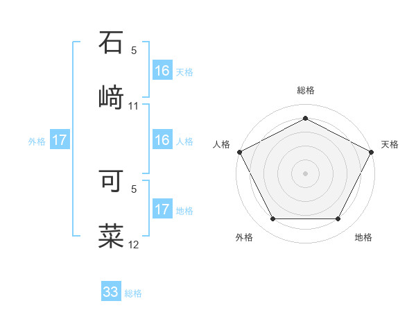 石﨑 可菜さんを姓名の画数から五運を鑑定