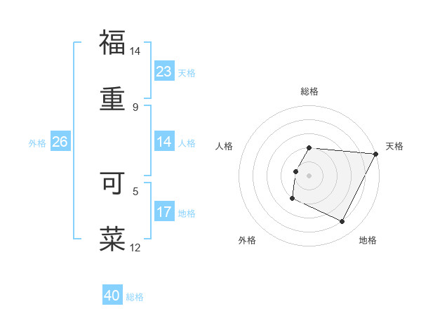 福重 可菜さんの天格は23画の5点!