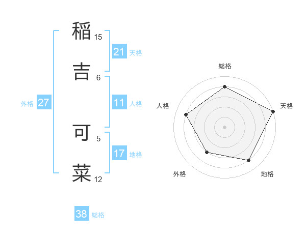 稲吉 可菜さんの総格は38画の4点!
