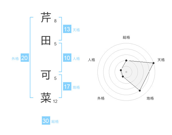 芹田 可菜さんを姓名の画数から五運を鑑定