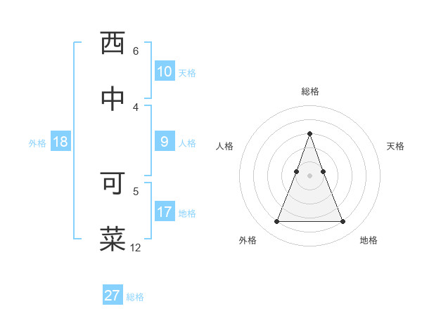 西中 可菜さんの総格は27画の3点!