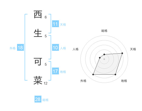 西生 可菜さんを姓名の画数から五運を鑑定
