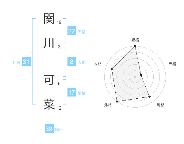 関川 可菜さんの総格は39画の5点!
