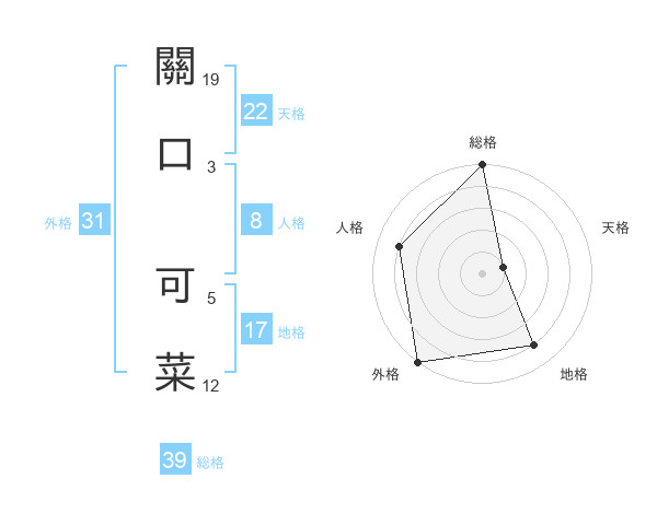 關口 可菜さんの外格は31画の5点!