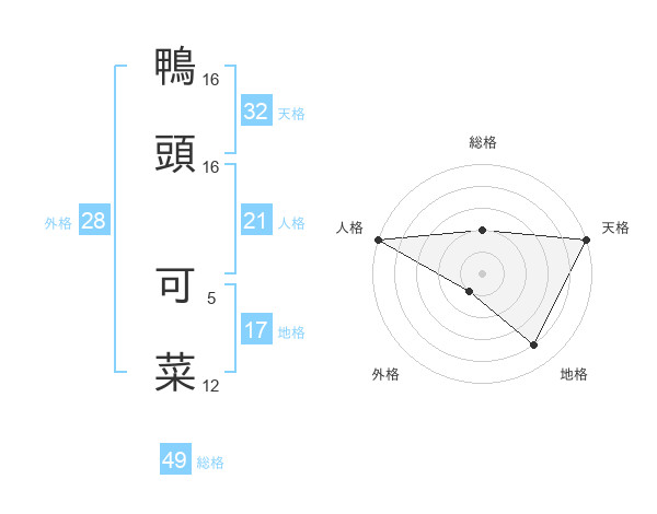鴨頭 可菜さんを姓名の画数から五運を鑑定