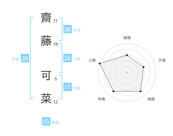 齋藤 可菜さんの総格は53画の3点!