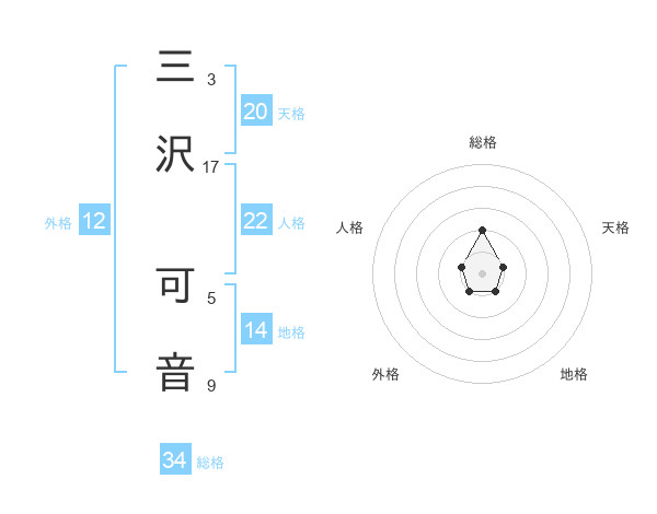 三沢 可音さんの総格は34画の2点!