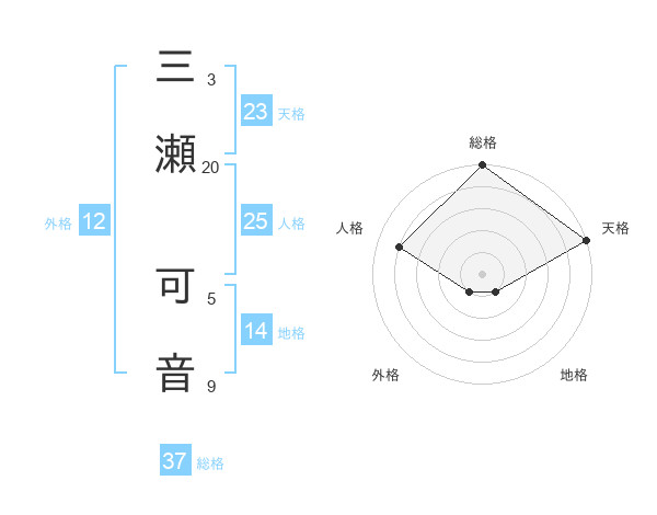 三瀬 可音さんの総格は37画の5点!
