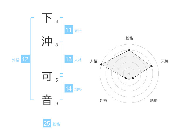 下沖 可音さんの総格は25画の4点!