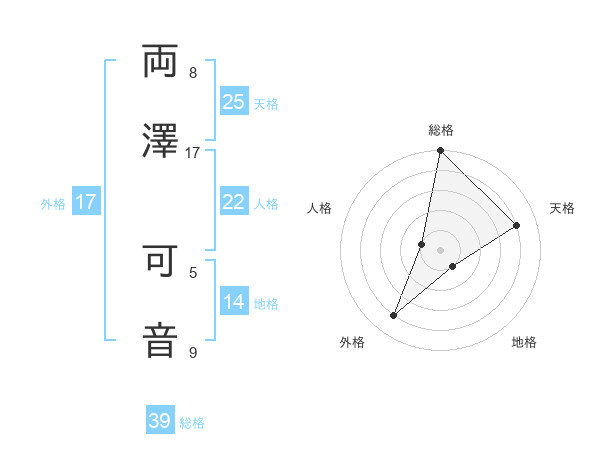 両澤 可音さんの外格は17画の4点!