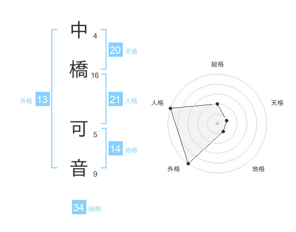 中橋 可音さんの外格は13画の5点!