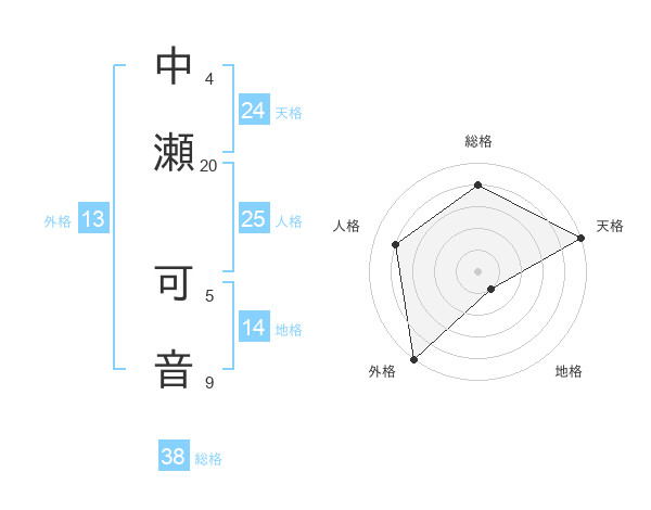 中瀬 可音さんを姓名の画数から五運を鑑定