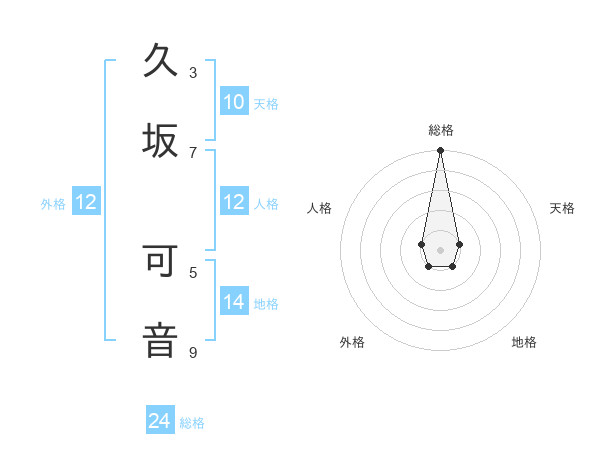 久坂 可音さんの総格は24画の5点!