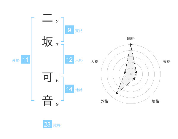 二坂 可音さんの総格は23画の5点!